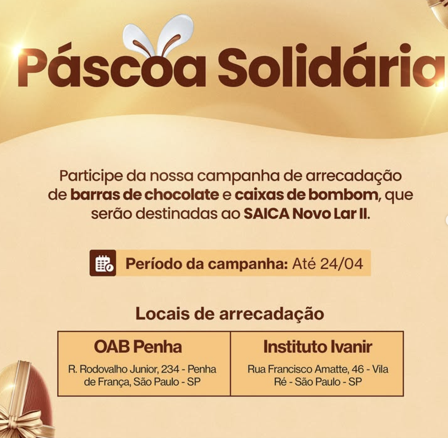 🍫✨ Páscoa Solidária OAB Penha de França (Até 24/04)